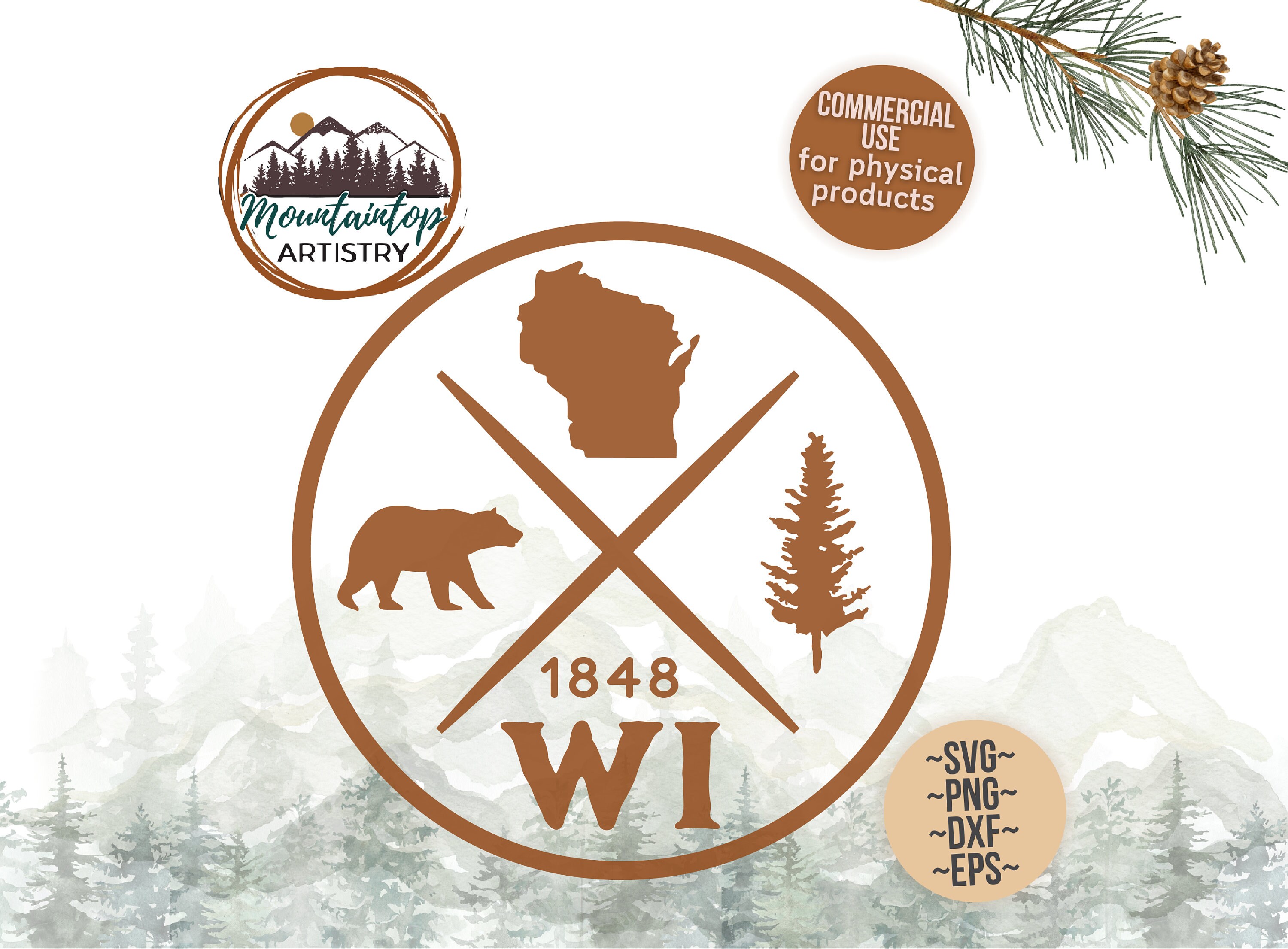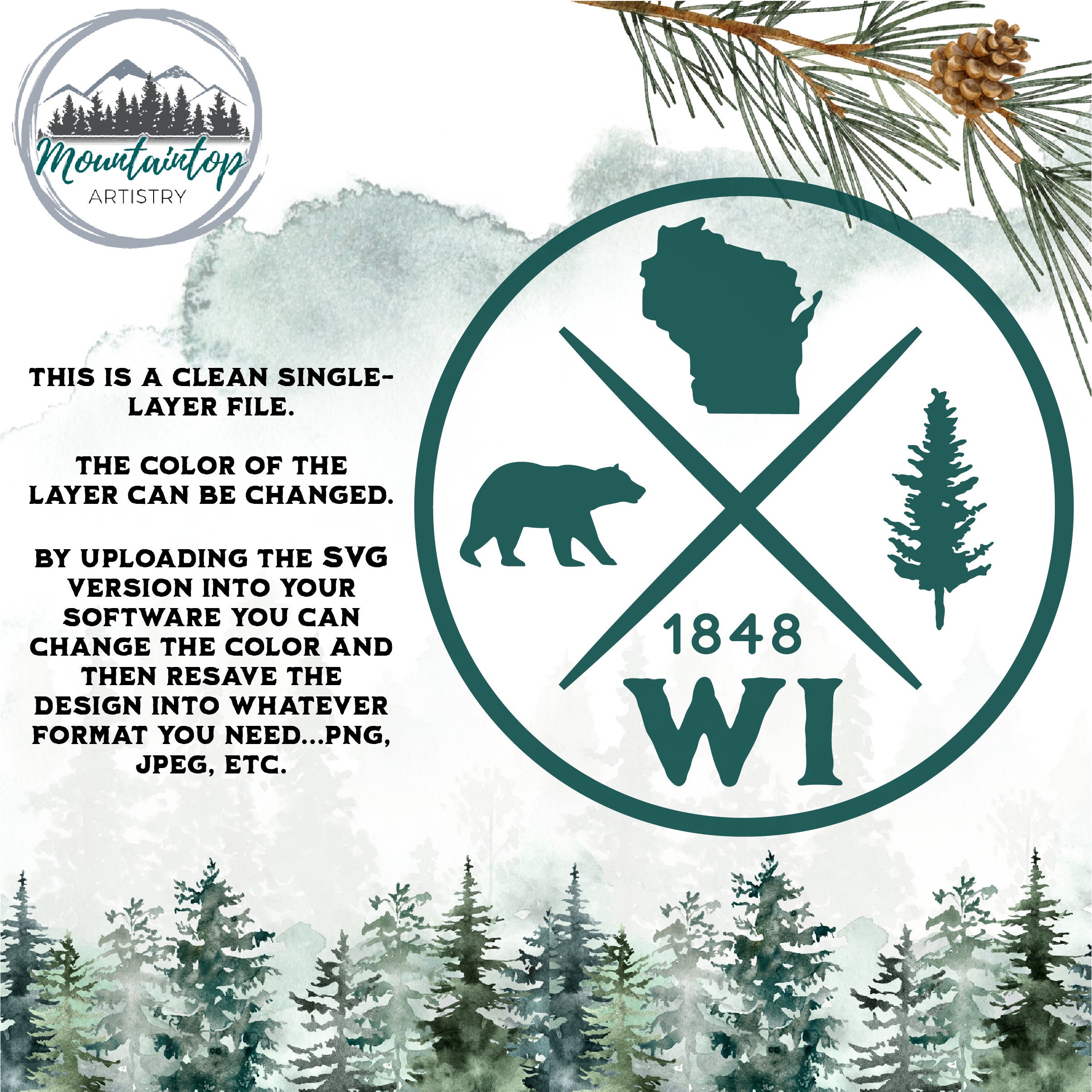 ๐ฒ Available formats in the download include a Wisconsin design in SVG, DXF, PNG and EPS files. The SVG files are extremely easy to use and customizable for color and size, whether you use it in Cricut, Silhouette, or GlowForge.